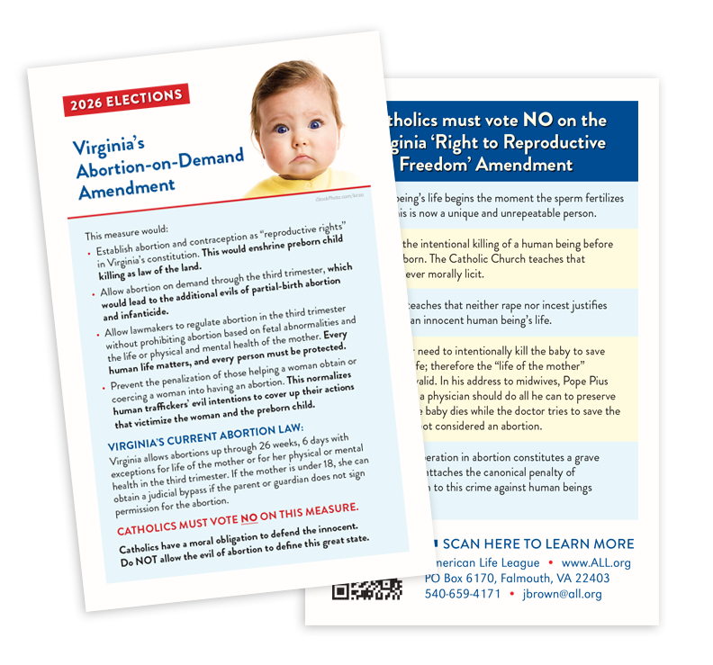 ALL has developed FREE materials with detailed and thoroughly researched information on WHAT each state’s ballot measure says and WHY Catholics have the obligation to vote against them.