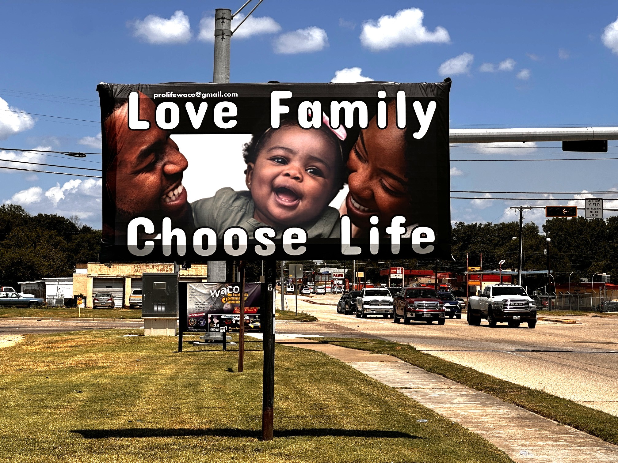 Pro-Life Waco’s new billboards (6’ x 12’) have a pro-life message and a family photo that includes dad. In over 25 years of billboard outreach, this is the first time Pro-Life Waco has included a father in the picture.