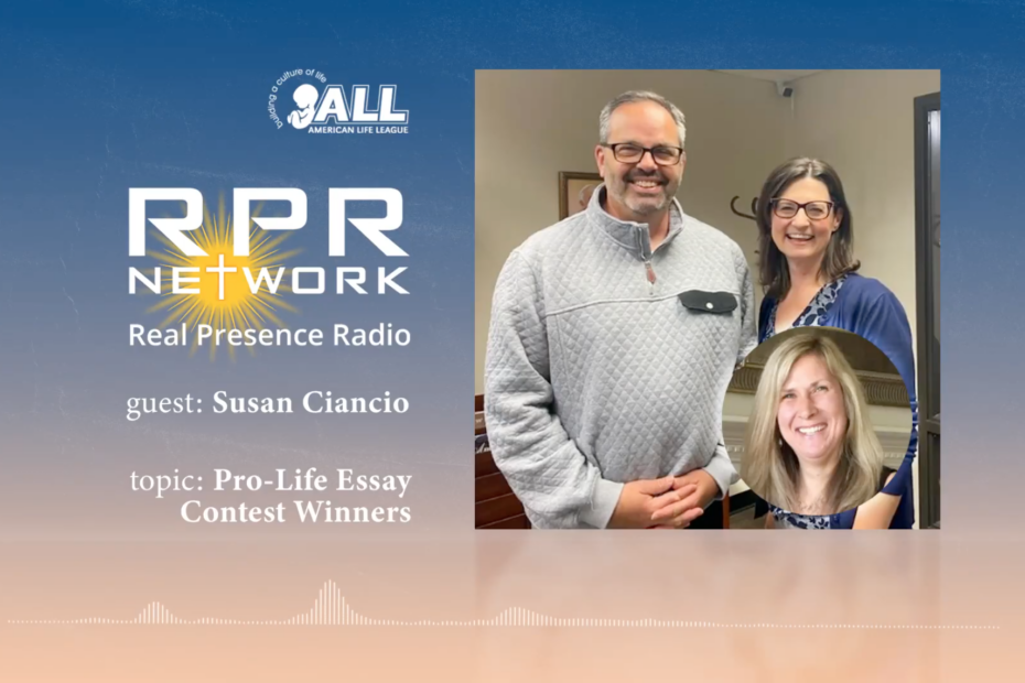 On Real Presence Live, hosts Lynn Devitt and Bob Noel welcome Susan Ciancio. Ciancio discusses ALL’s programs, including Celebrate Life magazine, the Marian Blue Wave… Read More »Pro-Life Essay Contest Winners