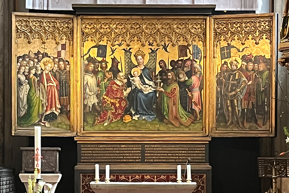 I have been thinking a lot lately about faith passed from generation to generation, which has led me to contemplate the works of a distant relative of mine, who was a 15th century painter. Stephan Lochner lived in the 1400s and painted nearly three dozen incredible works of religious art during his lifetime. One of those is prominently displayed in the Cologne Cathedral in Germany. Titled the “Adoration of the Magi,” this stunning triptych depicts Mary holding Baby Jesus, surrounded by the Magi, angels, and saints. When the triptych is closed, the panels depict the Annunciation. Lochner’s technique and skill at showing the love of Mary for her Son and her impending motherhood in the Annunciation scene show the importance of motherhood and help us see that Mary can and should be our model.