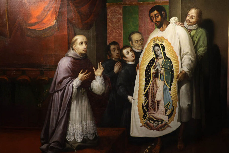 Today is the feast day of Juan Diego, the fellow who said, “I am a nobody, I am a small rope, a tiny ladder, the tail end, a leaf.” Juan Diego was a humble man to whom Our Lady of Guadalupe chose to appear. She told him to go to his bishop and ask that a church be built on the spot where she stood. To ensure his credibility as he stood before the bishop, Our Lady filled Juan’s cloak with fresh roses that appeared in the dead of winter. When Juan Diego unfolded his tilma, the beautiful image of Our Lady of Guadalupe was imprinted on it.