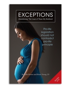Exceptions: Abandoning ‘The Least of These My Brethren’ Should pro-life principle be compromised to make advances in pro-life legislation? In this booklet, Judie Brown and Bring Young tackle a dangerous distinction between principle and pragmatism in the pro-life movement—a distinction that leads to erroneous exceptions, loopholes, and traps. Compromising pro-life principle for pro-life legislation is a lose-lose game for both morality and the common good. |